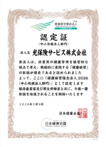 この度光保険サービスは無事に2026年度もこの『健康経営優良法人』に認定されました!!